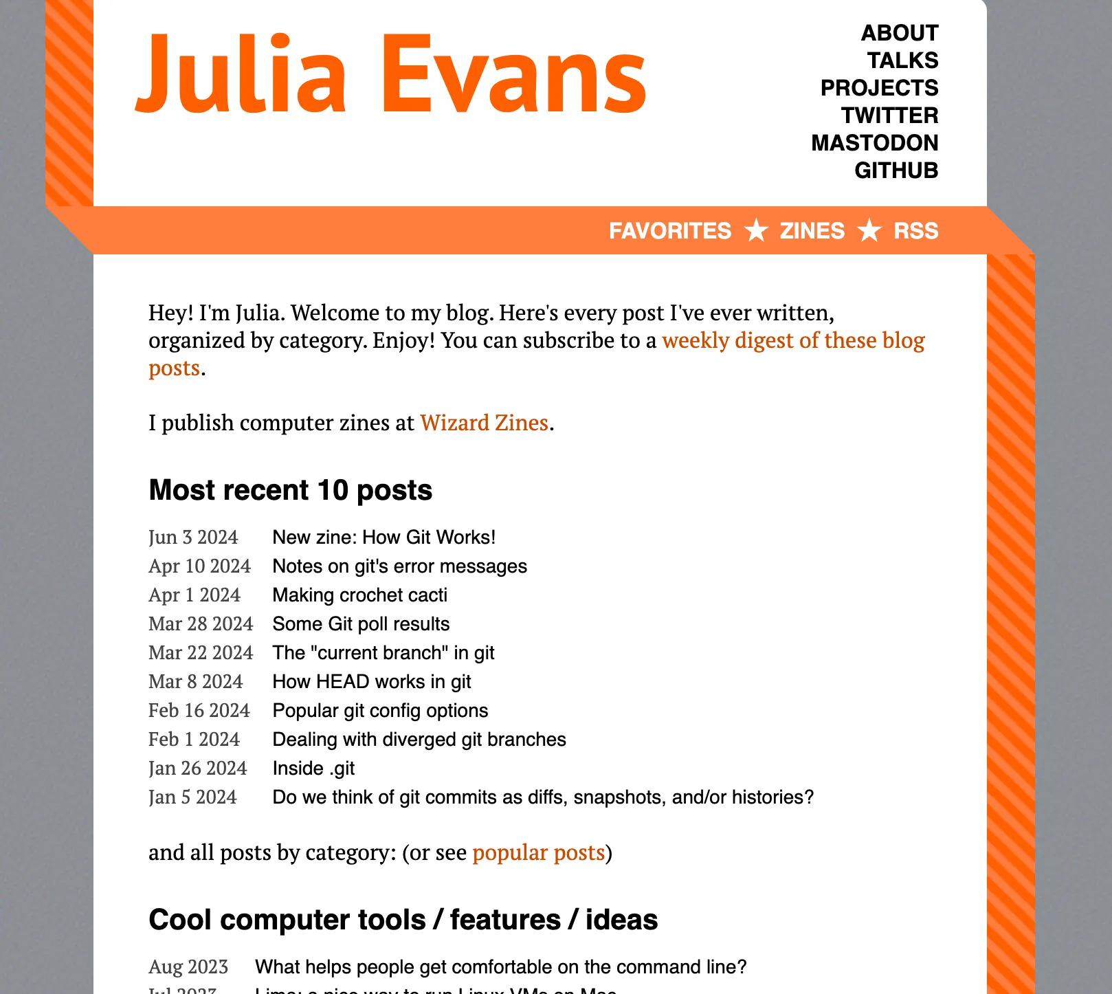 The one I decided to copy was this site by Julia Evans:
